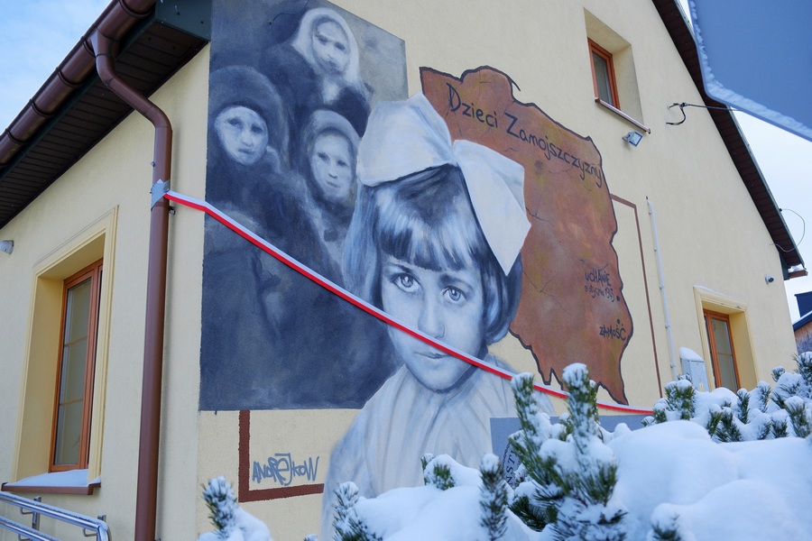 Autorem muralu jest Arkadiusz Andrejkow, znany artysta i twórca murali historycznych. Symbolicznym i poruszającym znakiem była sytuacja, gdy namalowana dzień wcześniej twarz dziewczynki następnego poranka pokryta była szronem - tak jak 83 lata temu dzieci wysiedlane zimą w skrajnie trudnych warunkach pogodowych.