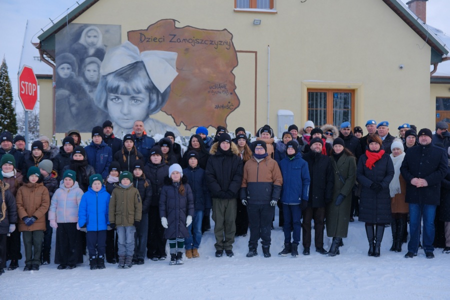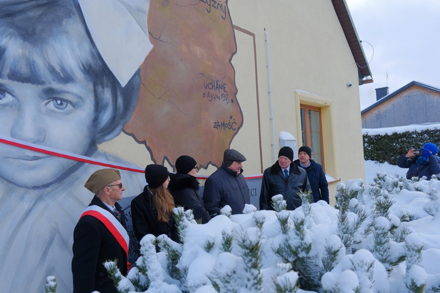 Szczególnym i niezwykle poruszającym momentem obchodów było uroczyste odsłonięcie muralu poświęconego Dzieciom Zamojszczyzny z terenu Gminy Uchanie, który powstał na ścianie budynku Banku Spółdzielczego w Uchaniach.