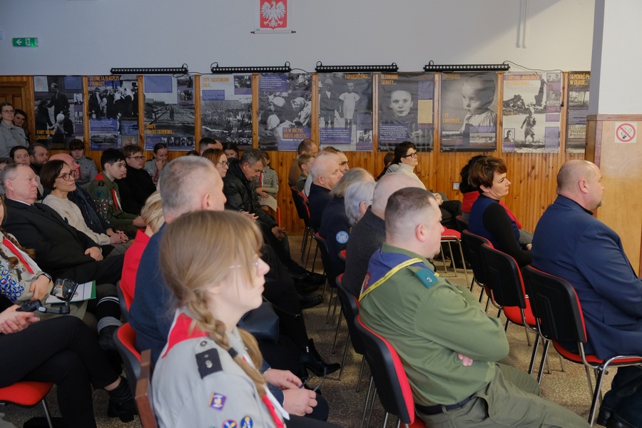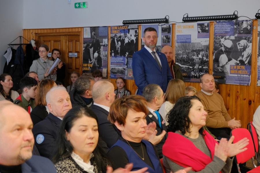 Dalsza część uroczystości odbyła się w Gminnym Ośrodku Kultury w Uchaniach. Uczestnicy mieli okazję obejrzeć wystawę wypożyczoną z IPN Oddział w Lublinie oraz projekcję filmu dokumentalnego „Wspomnienia Dzieci Zamojszczyzny”, zrealizowanego przez White Studio. Film zawiera poruszające relacje świadków wysiedleń z terenu Gminy Uchanie i stanowi niezwykle cenne świadectwo historyczne. Zdjęcia do dokumentu realizowane były w lutym 2025 roku - niestety jedna z osób biorących udział w nagraniu nie doczekała jego premiery.